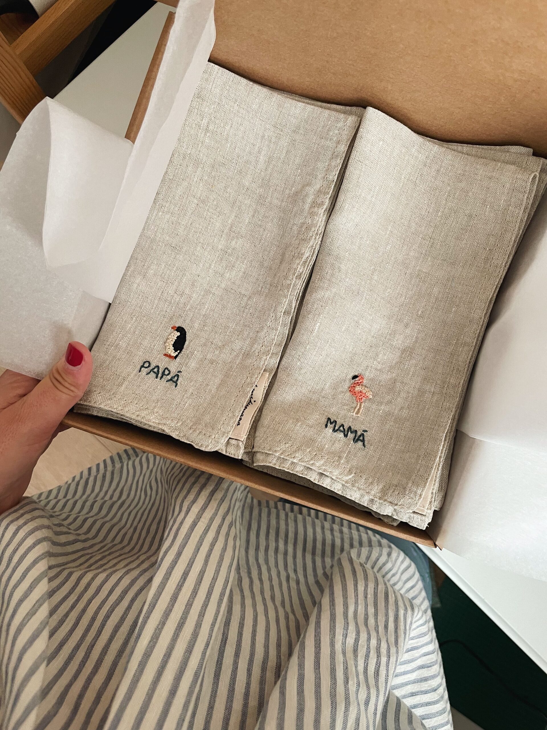 Las servilletas se pueden planchar, a media temperatura, teniendo mucho cuidado en la zona del bordado.
